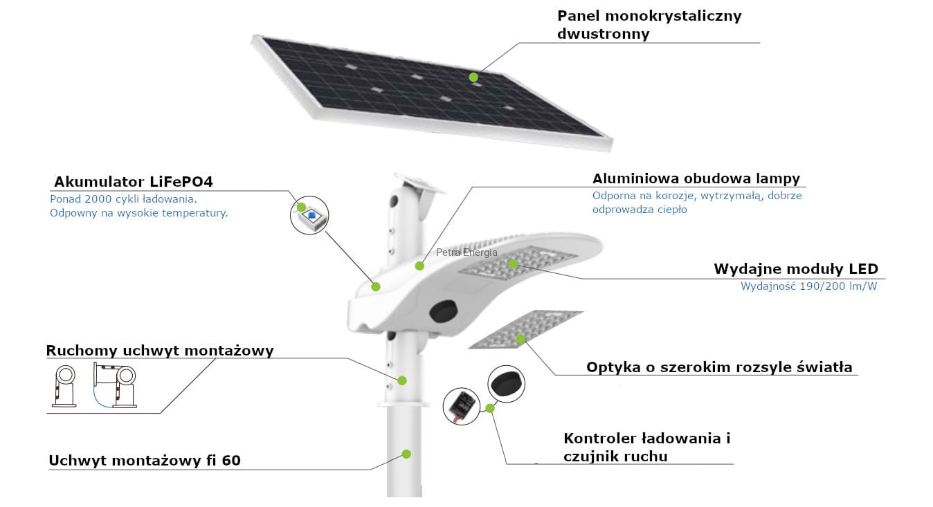 - Koszt jednostkowy latarni jest niższy niż tradycyjnej latarni solarnej.